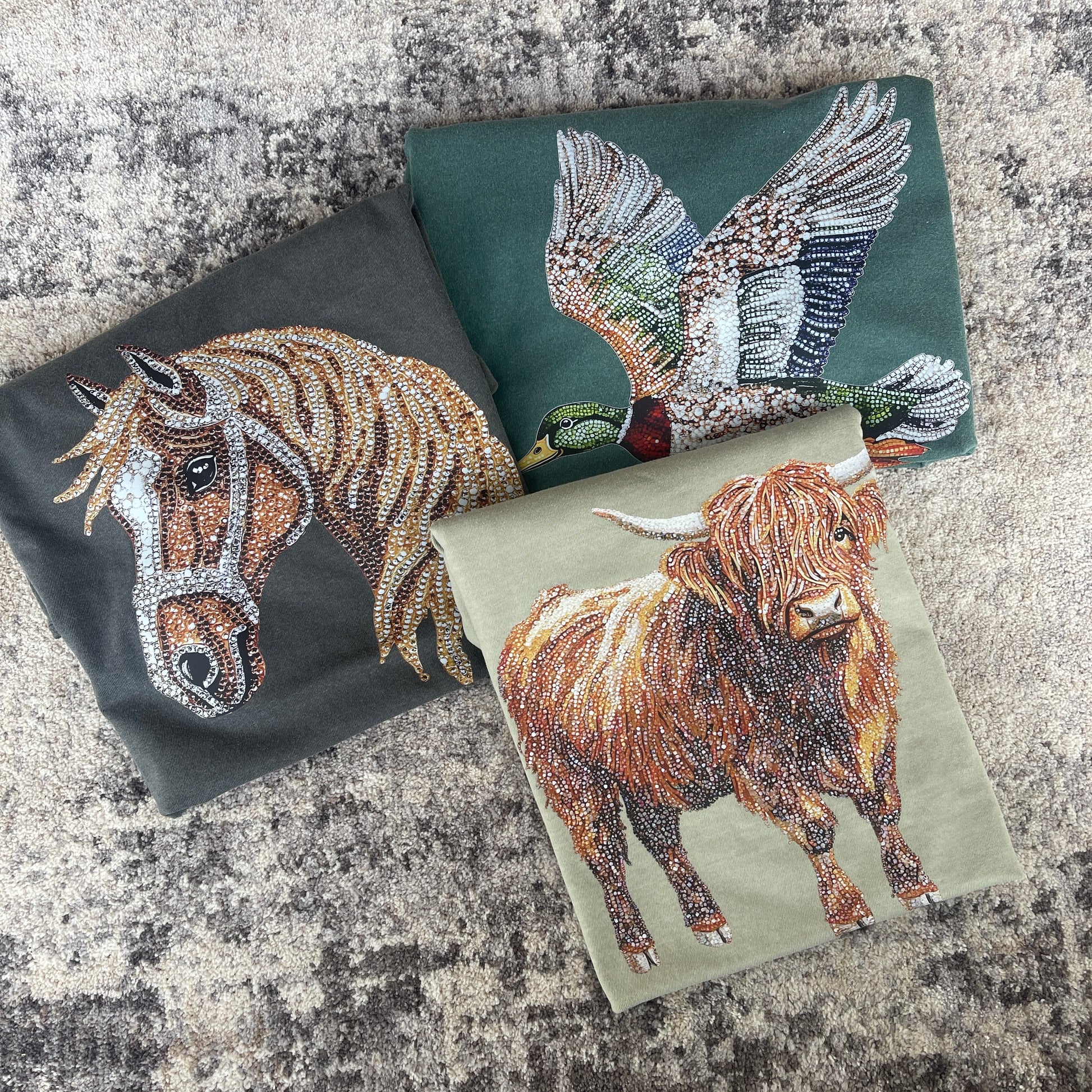 ✨ Give ‘em glam without the glitter mess. These tees are printed to look like rhinestones but it’s all smooth, lightweight ink. Each design gives you that sparkle and dimension of rhinestones with none of the fuss.