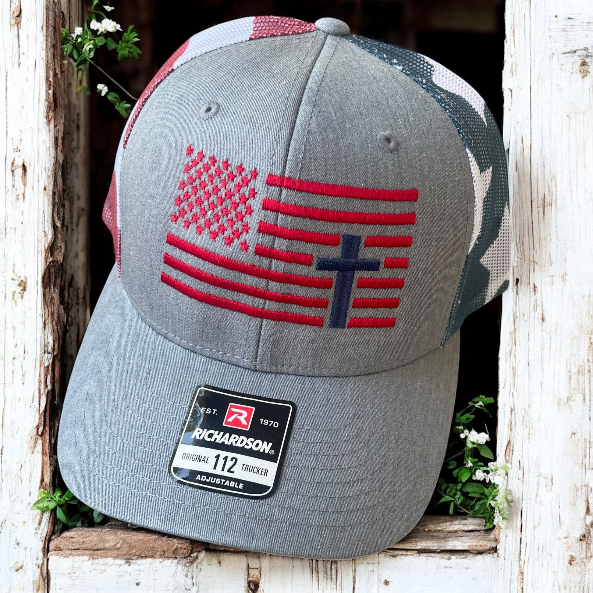 Gray Faith & Freedom Embroidered Flag Trucker Hat | Snapback