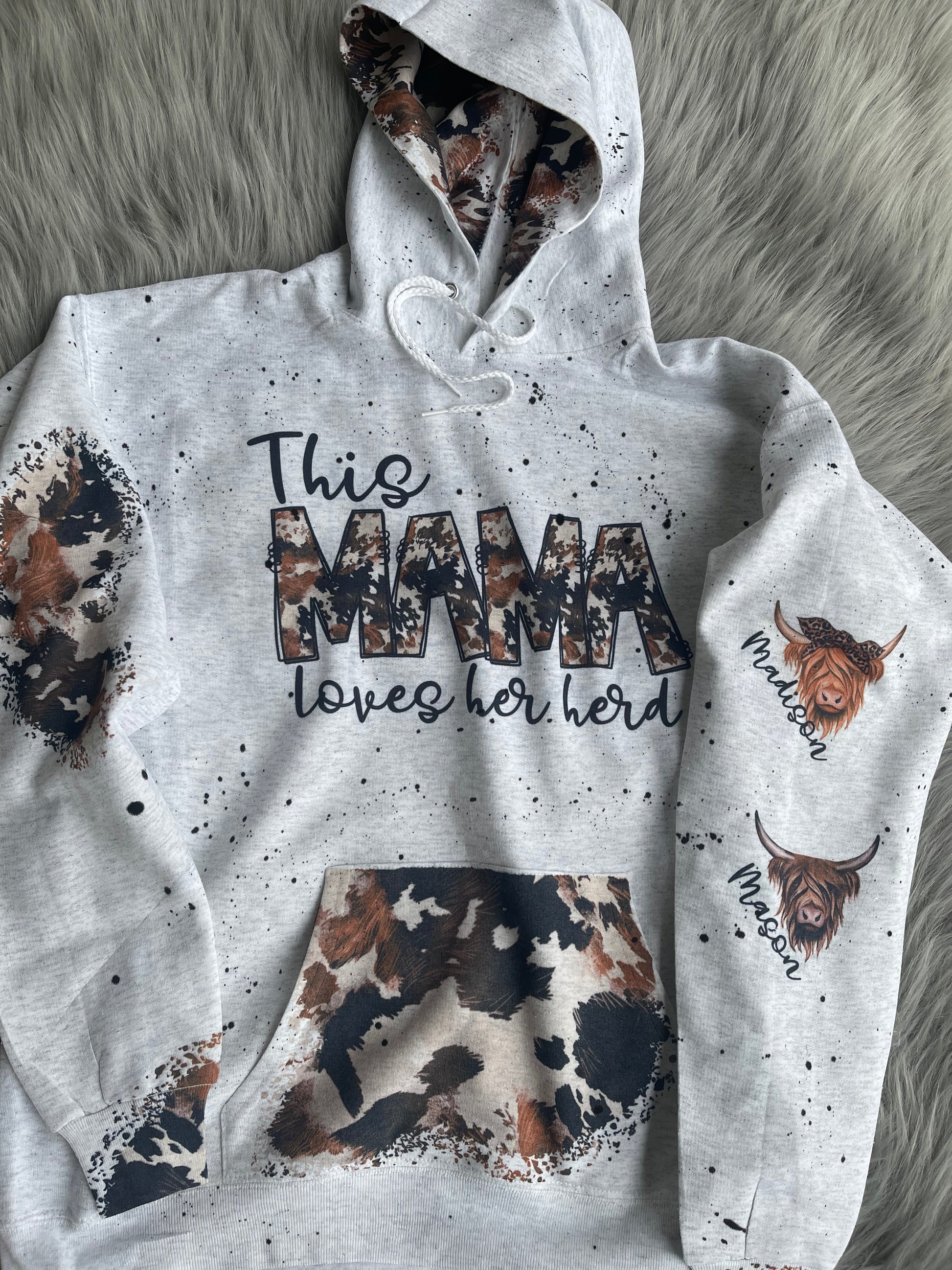 Introducing "This Mama loves her herd" - the western-style hoodie with cow print accents, for mamas, Grandmas, Aunties etc. who want to show the world who's their biggest fan. With the perfect combination of sass and country spirit, our hoodie will make sure you get lots of love from your herd!