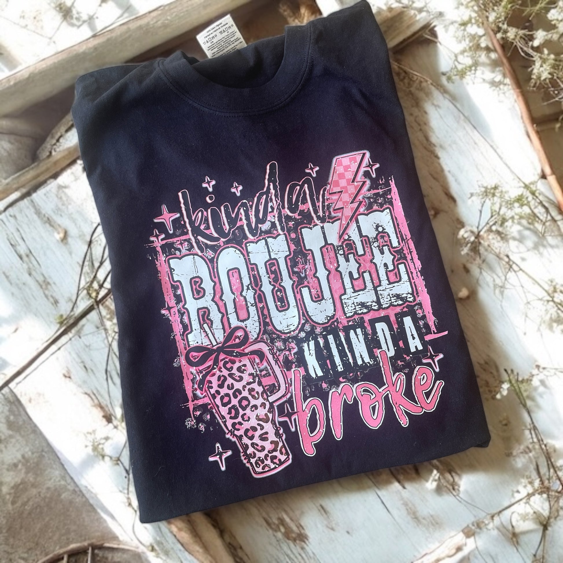 Champagne taste on a dollar store budget? Same, girl. This charcoal tee brings pink, leopard, and sparkle energy—without maxing your card.